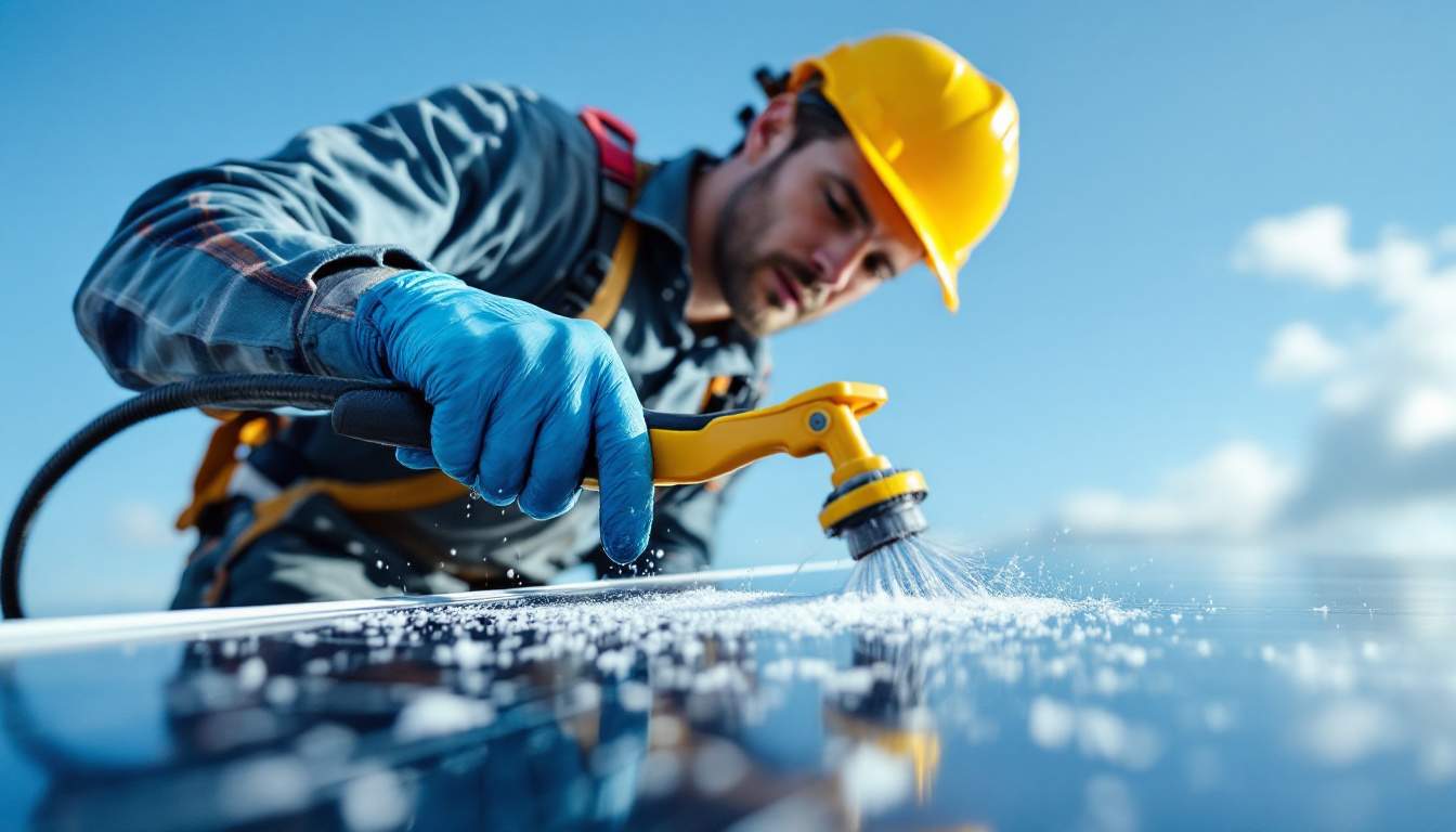To clean solar panels effectively, you will need a few basic tools: a soft brush or sponge, a squeegee with a long handle, and a bucket of soapy water. It is crucial to use non-abrasive materials to prevent scratching the panel surface. Avoid using harsh chemicals or pressure washers, as these can damage the panels. Instead, opt for a mild detergent mixed with water to gently remove dirt and grime. Additionally, consider using a water-fed pole system, which allows you to clean panels from the ground without the need for ladders. This method not only enhances safety but also provides a thorough cleaning without the risk of damaging the panels. Furthermore, investing in a water filtration system can ensure that the water used for cleaning is free from minerals and impurities that could leave spots or streaks on the panels.